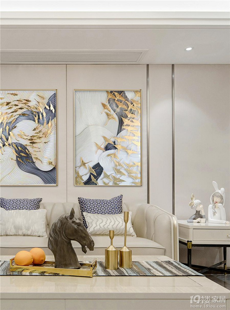沙发背景墙上的装饰画,将古典情怀融入空间,享受大自然的馈赠,流淌安逸和空灵的旋律,为客厅增添灵静和素雅的视觉效果。