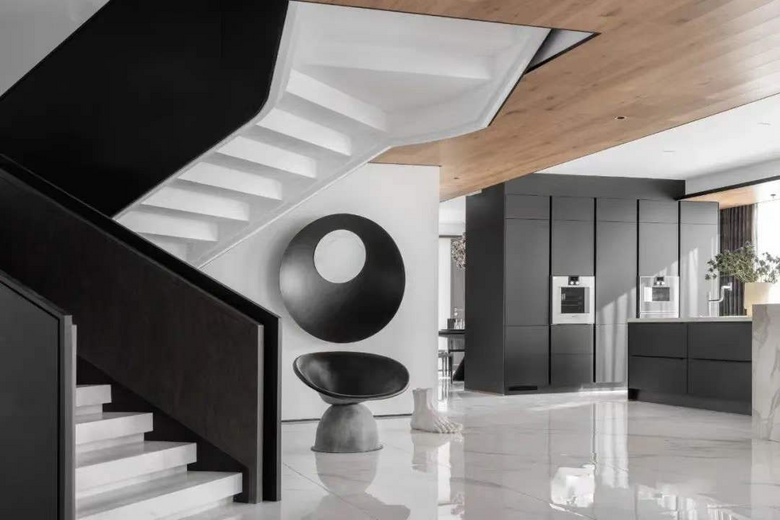 〖极简主义大宅〗大量的留白,充满了浪漫主义色彩,凸显极简风的纯粹。空间以黑白为主色调,各种设施形态各异,或球形、或方形、或不规则的形状,表达一种不受拘束的自由艺术创作理念。