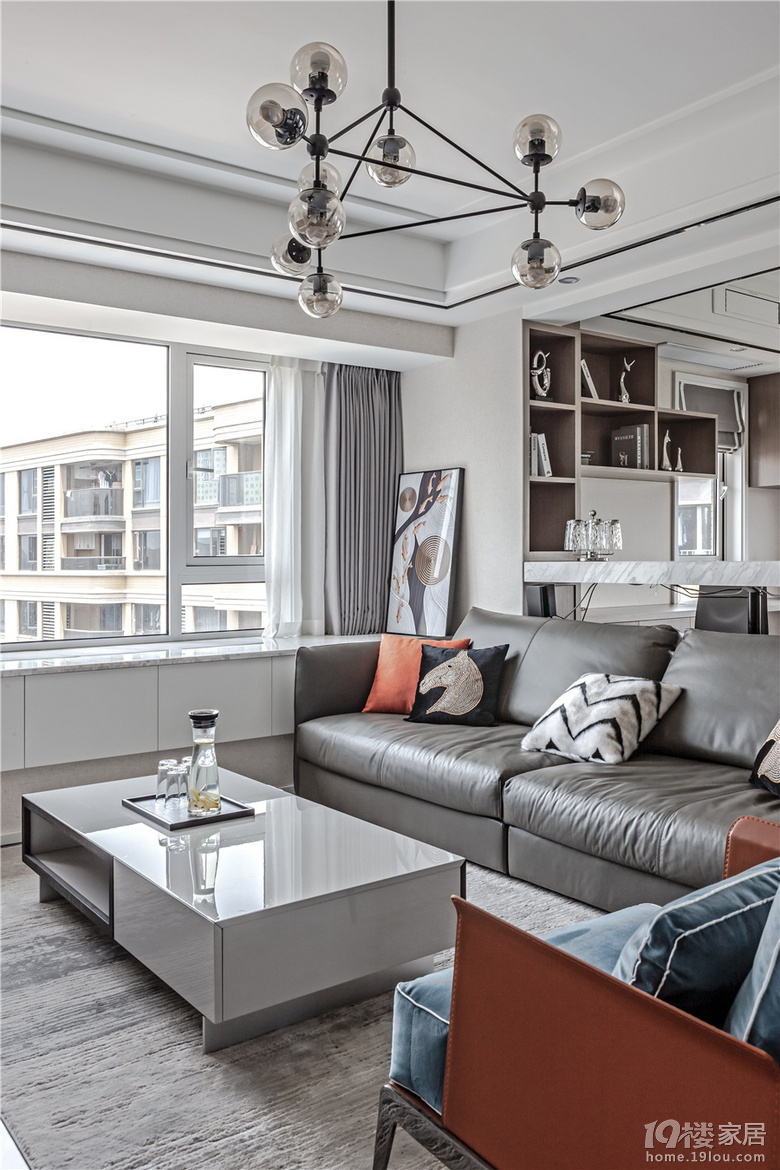 橘色抱枕,打破了灰黑带来的沉闷感,既能点睛,又不至于喧宾夺主。