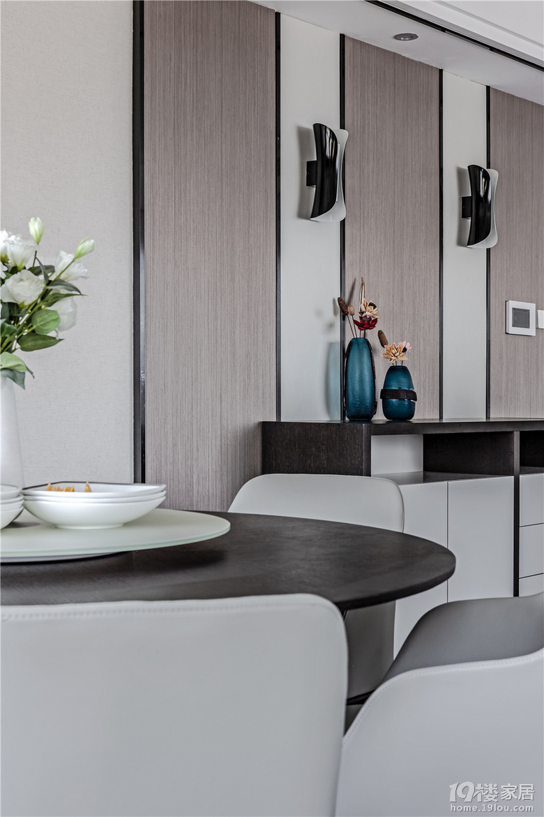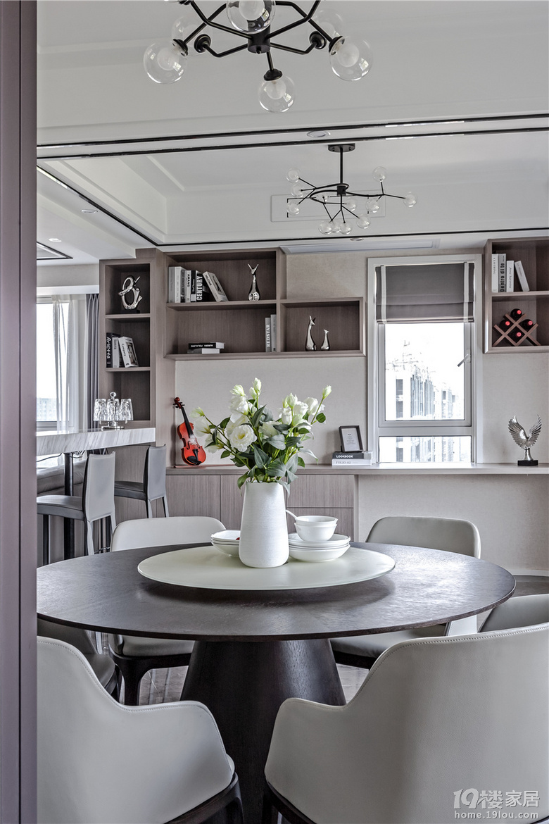 爸妈在餐厨备餐,女主人在客厅陪孩子玩耍,男主人在书房工作。饭菜上桌,彼此呼应一声,一家人便团聚起来,围着圆桌共享晚餐,其乐融融。