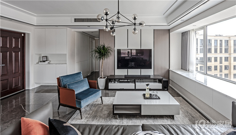 软装选用深色系,与白色形成对比,呈现出都市生活的简练感。