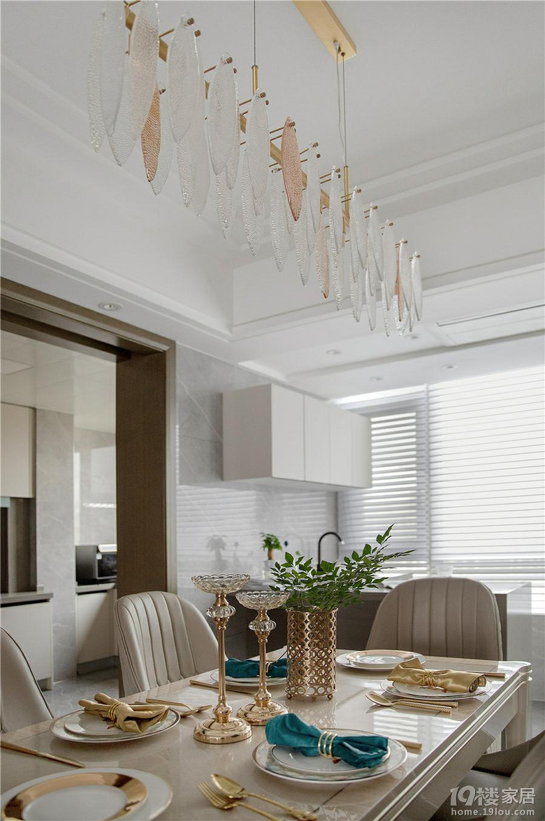 餐桌、餐椅的材质、风格与客厅的家具一致,色调的统一,简洁的造型让整个公共空间更加有格调。