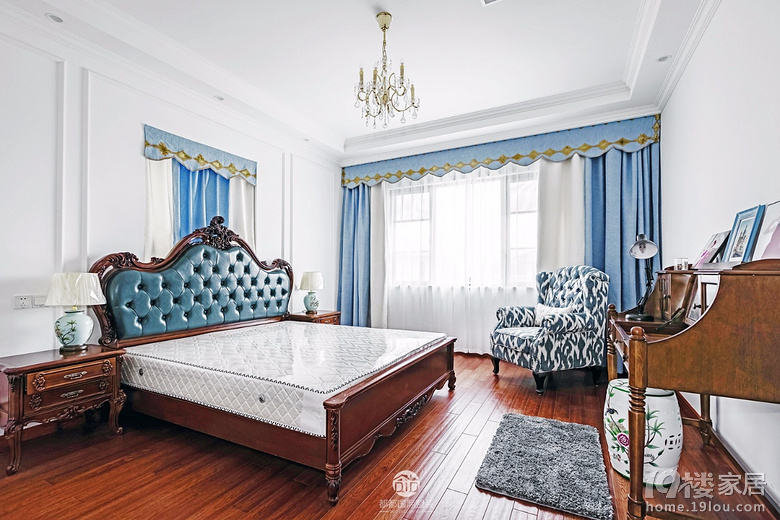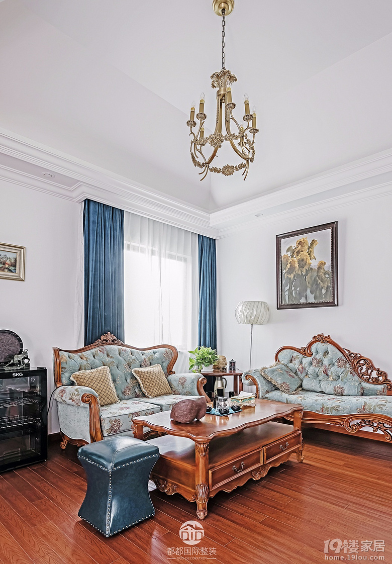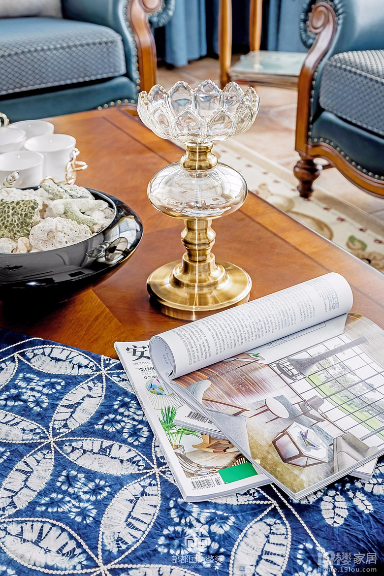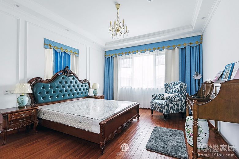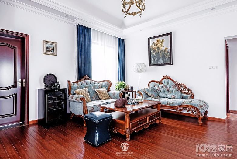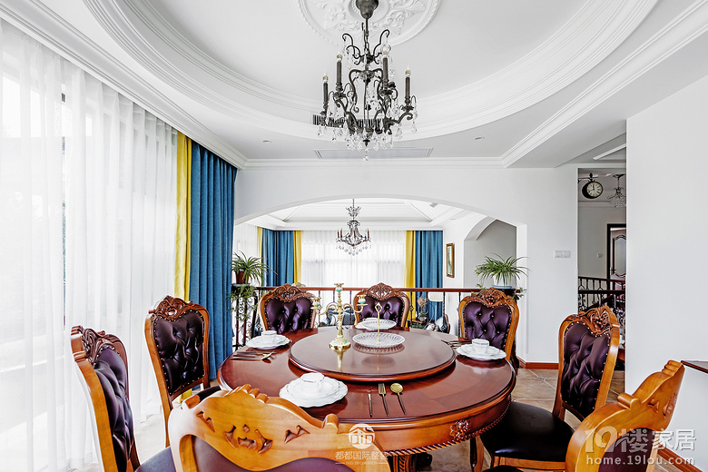 初见,最大限度地优化建筑平面,室内空间阔绰从容,并以优雅弧线贯穿室内,构建流畅动线,围合着得宜的空间尺度。全屋木饰质感细腻,蓝黄色窗帘做为起承转合的色调奢华却不张扬。