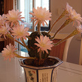 自今年四月份起这盆仙人球就开花不断,2朵、3朵的........;到了现在竟有10朵同时开放,哈哈。