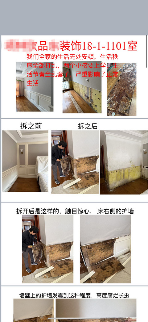 昨天打了110,今天有工人师傅来拆护墙了,竟然在霉成这样了房修明确表示外墙现在没人来修,想要修,就无限期等着有没有人帮忙出主意