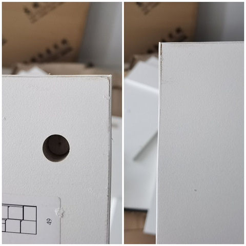 本人因家里装修,从路桥居然之家二楼庄致全屋定制(普森电器)采购橱柜以及集成灶集成水槽等材料,橱柜到货后,我方质疑其柜门并非为合同标注的柜门实木多层 进口LG-106(合同原为LG-114,下单前我方重新选择颜色后进行更改,与商家微信聊天确认改色)附图 此图为我方与商家采购所写单据截图 上方截图为我方与商家更改柜门颜色截图 上方图片为商家给我方的柜门安装后遗留的料,我把封边条撕开