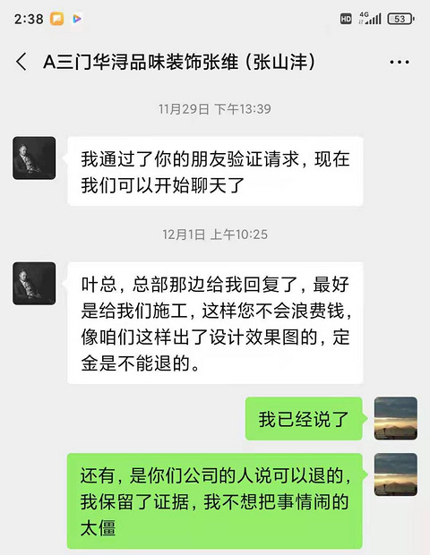 三门华浔品味装饰交钱前和交钱后态度两样,欠钱不还