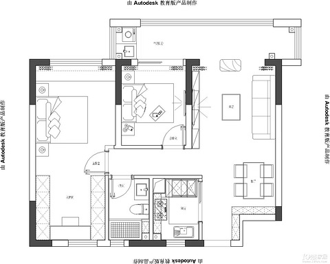工作繁忙的男主人,需要在家办公的书房,不喜欢封闭的空间,想要随时随地看见可爱的妻女和家人,同时要保证充足的收纳空间。那么就用储物柜和装饰墙连接书房与客厅,打造隔而不断的空间布局,无论是功能、色彩和颜值上都能满足屋主的需要。同时,扩大厨房空间、优化生活阳台的清洁晾晒功能、扩大主卧衣帽间,确保日常起居每一个活动都能舒适便利。 原始户型非常方正,只对细部进行优化,提高空间利用率、增强收纳功能。1. 客厅