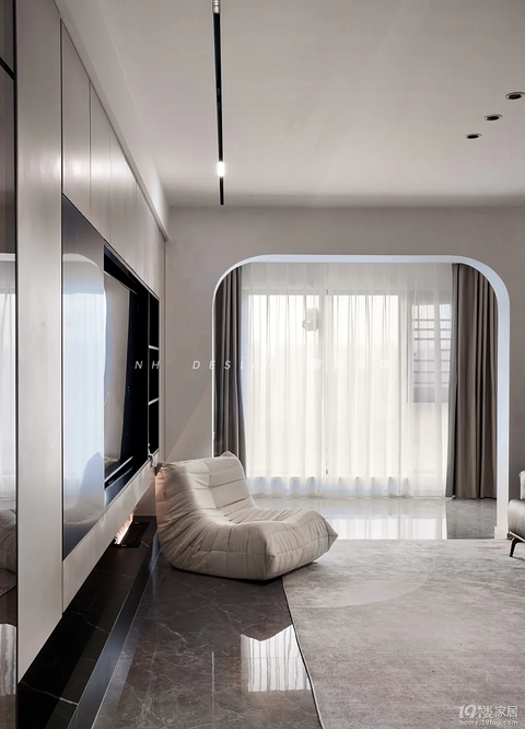 项目信息地址:保利霞飞郡城市:中国 杭州户型:四室两厅面积:155㎡风格:现代意式设计施工:浙江南鸿装饰 本次项目选择到的风格是现代意式,整体架构以简洁的直线为主,清晰利落而富于现代感。黑白灰的低彩度配色,营造简约知性的居家氛围。公区域中客餐一体的格局,串起敞亮通透的视野。点线面有序结合的灯光设计,在提供充足亮度的同时,也将空间的层次感和立体度大大强化。 ?户型方案 ?实景呈现 No.1客厅