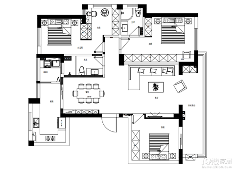 【2022日立中央空调杯】150㎡现代风,厨房挤下休闲区