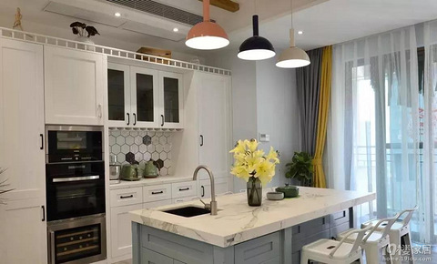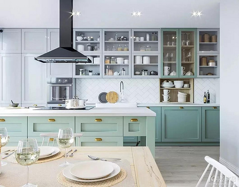 咨询热线:18268144237(微信同号) 0571-85336587厨房与餐厅的隔断参考实景,用玻璃推拉门可以让空间更显通透~