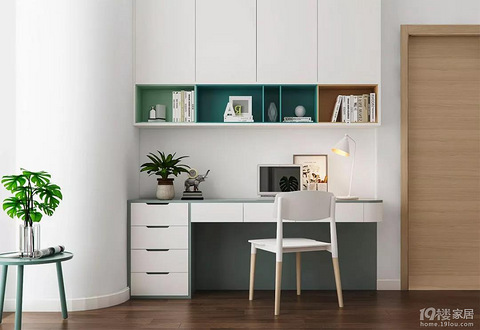 咨询热线:18268144237(微信同号) 0571-85336587 如今,家庭办公区就像用餐区一样,也是生活的一部分。事实上,在寸土寸金的城市中,没必要单独开辟出一间书房。家里几乎任何区域都可以定制出一个舒适、轻松的读书环境。 1、床头柜换小书桌 其实,卧室可以省略一个床头柜。在床头位置设计一款小书桌,既能办公,还可以当梳妆台使用。450mm以上的进深,就能将手臂放到桌面来操作电脑,桌下放腿