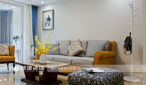 项目楼盘:温馨家园项目面积:97方项目风格:现代装修公司:城建装饰 咨询热线:18268144237(微信同号) 0571-85336587客厅以米白色为基调,没有花哨的装饰,电视背景墙也是大色块线条,与沙发背景墙相对应,简约不失时尚。沙发选择了琵琶黄,它不像柠檬黄那样挑眼,更低调气质一点,很好的调和了整体空间的色彩平衡。阳台的休闲一角,沙发旁的简约衣架,都是设计师的小设计,小心思。