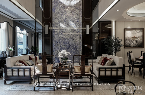 咨询热线:18268144237(微信同号) 0571-85336587 -城建装饰作品 450方中式排屋--本案空间配色呈现出清雅含蓄、端庄风华的东方之美,跃层挑高的客厅开阔大气。全屋精致的线条勾勒、材质的运用及软装陈列都体现出中式的韵味与仪式感。 咨询热线:18268144237(微信同号) 0571-85336587