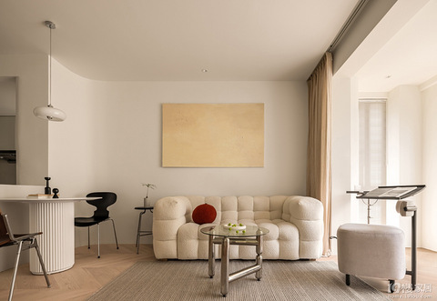 小户型一样可以仙气满满,不会装的就来借鉴借鉴我的小家吧! 客厅 走进客厅,就能看到简约的线条和素雅的色系搭配,白色+灰色为主的色调,让客厅更显自然温润的美,再搭配艺术挂画和植物的点缀,让客厅拥有了一丝时尚轻奢感。 慵懒的夏日午后,蜷进蓬松的沙发上,泡一杯茶,选一个好看的电影,静静享受时光缓缓流淌的惬意与放松。餐厅 客厅与餐厅以开放式设计手法去诠释空间氛围,整个空间舒适而明亮。 餐厅的一侧墙面都设