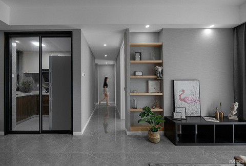 118㎡现代风,墙面隔断做成展示柜,美观又实用