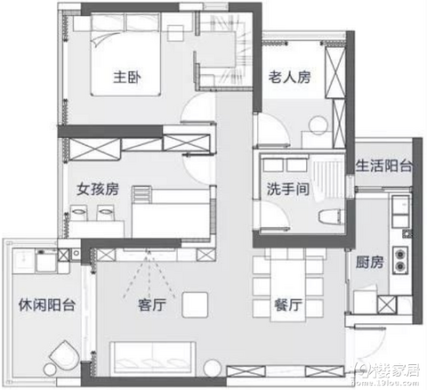 户型解析项目地址 / Address:梦情湾佳苑 设计施工 / Co :铭品装饰 风格 | Style:现代 项目面积 | Area:120㎡ 业主信息:本期案例常住人口为6人,男女业主是普通的公司职业,女业主比较知性,有两个可爱的小宝宝,对于家居设计,业主希望有足够多的收纳空间,设计师根据其需求,将三房改为四房,设立父母房,主卧和两个儿童房,每个家庭成员都有自己的私密空间,生活上也更加舒适。 原