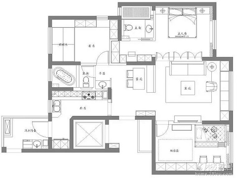 “真正的平静,不是避开车马喧嚣,而是在心中修篱种菊”。 本案位于【杭州-禹州滨之江】,89㎡的精装房。业主是个90后小哥哥,平时一个人住,喜欢“复古又简约”的感觉,同时希望家里干净暖心,有生活气息。 平面设计图 结合业主的喜好和生活习惯,设计师做了局部改动,再利用软装,成就了这个独一无二的家居空间。整体风格复古却不厚重,有腔调但不老成,将经典与现代设计的完美平衡。在浮躁喧闹的城市,为主人打造了一