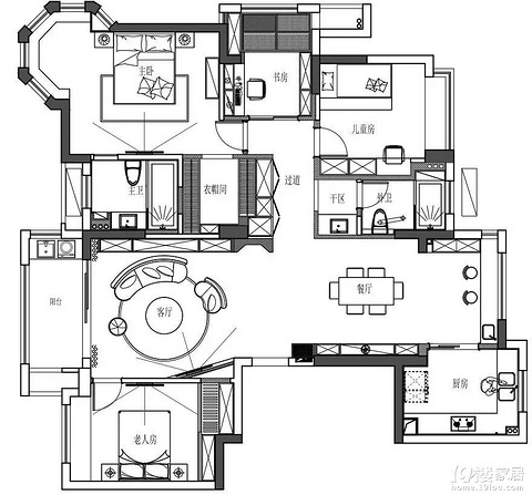 【圣都装饰】—【混搭风格】——A6精装样板房120方