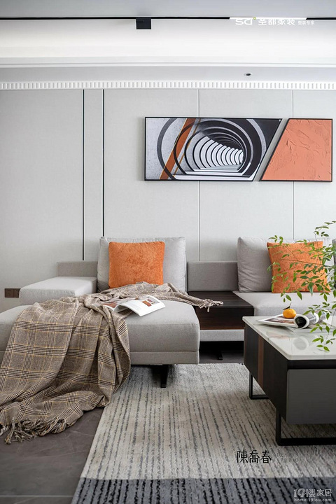 本期案例▼▼坐标:杭州·开元广场▼▼面积:151平▼▼户型:四室两厅一厨两卫▼▼风格:现代轻奢 本期案例来自首席设计师林晓珍的轻奢风作品,高级灰向来是轻奢的不二宠儿,尤其是点缀一丢丢的爱马仕橙,是优雅的气息没错了。 不管是和电视柜高度和谐统一的灰白相间背景墙,还是线条感十足的沙发背景墙,都加入了一点点金属元素用以提味。这个道理告诉我们,想要低调奢华,巧用金属元素锦上添花。 过硬的硬装一定与
