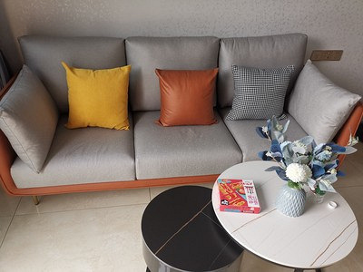 家里面积平方有限只能选这种小型的沙发。去掉公摊面积实际面积只有60多点。真是实在有限。当时装修也是因为又要结婚等事情,所以预算卡的很牢。我们也没有去实体店去看,就在淘宝买的。2.1米的乳胶款,1100+,很便宜了,不过质量什么的都很好,送沙发的师傅说要是我们在实体店这个价格根本买不到。放好了发现比图片还要好看,开心啦。同户型的邻居看了也和我们买了同款~