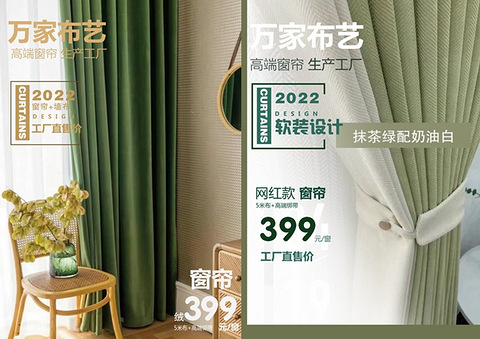 【窗帘、墙布团购】万家布艺:网红款窗帘低至399元/窗