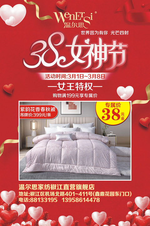 女神们辛苦了。 温尔思家纺椒江旗舰店3.8女神节送福利啦