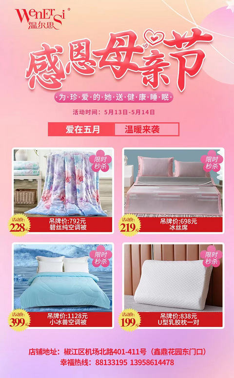感恩母亲节,为珍爱的她送健康睡眠@温尔思家纺椒江旗舰店