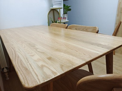餐桌选了和家里装修风格搭配的原木风餐桌,实木橡木的,质感外观都挺好,在餐厅放了一些绿植,显得餐厅有一些活力,也增加一些餐厅的跳色,不然一水的木头质感感觉太单调了。