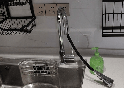 厨房抽拉龙头,冲洗洗槽很方便,360度无死角,龙头不易溅水