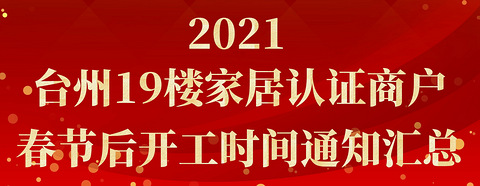 2021年台州19楼“家居版认证商户”春节后开工时间汇总通知