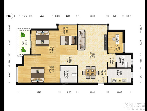 最近公婆村里拆迁分房,我们家分到了一套140平和110平,还是连在一起的母子套房。家里二老拿到房子之后,也是想着急着装修。本来我们也是想着装修140平的东边套,110平的房子我们小两口住好了,但是两老逛了一圈,发现其他的邻居都是把两套房子打通形成250平的超大平层,这样每个空间都会变大。家里变成四世同堂,组成7,8口人的大家庭,感觉也挺热闹的。方案一:如果打通两套房,这样操作,厨房和卫生间数量,都