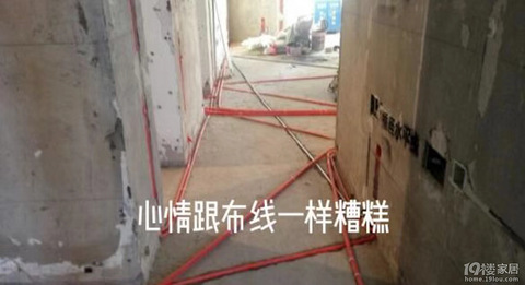 水电改造永远是装修的重头戏!最费钱的是它,最难做的是它,问题最多的也是它! 这不19楼网友@空叹旧交难奋翼为了省钱找了装修队,结果水电刚做完心情却像布线一样糟糕。 事情的经过大概是: 他只有10万的装修预算,为省钱他爸找了个装修队,结果把水电管道排的好似蜘蛛网,师傅说虽然不美观但并不影响质量和使用,反正都要贴砖,最后也看不到。 他爸也觉得问题不大,因为材料都是自己买的,质量肯定没问题,而且如果重