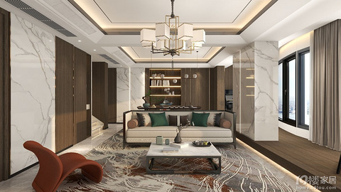 这是一套40平方的客餐厅,且包含阳台。从顶地面三个方面去讲解。立面中第一点:将电视背景墙延伸到阳台,形成一个整体。第二点:吊顶做成弧度或者做成斜度,这样视觉感会更强。第三点:将电视背景墙最右一侧与右边墙做成同一种材质,与右边墙形成呼应。顶面中第一点:如果客餐厅在20平方之内,吊顶可以做成同一个板块,如果达到40多平方可以形成分区去做。地面中第一点:地砖采用通铺形式,整个空间会更加整洁。第二点:地面