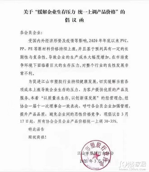 随着疫情后国内经济的逐渐复苏,从今年年初开始,就不断有各种原材料涨价的信息传出(2020年疫情后各行业几乎不敢提涨价)。 加上疫情对整个世界环境的影响,国际原材料市场价格大幅上涨,对国内原材料价格形成冲击已经是板上钉钉。身边各行各业的人士纷纷呐喊:生意难做,我们真的要涨价了。 目前,已经有部分建材品牌陆续收到了厂家的涨价通知,包含卫浴,家具,定制板材,钢材......涨价幅度高达30%-40%,有