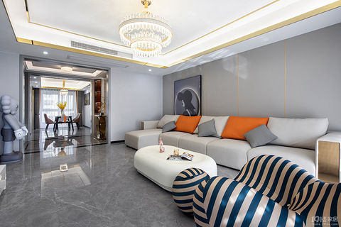 1.法式橙白配色 以充满肌理感的白色为底色,浪漫慵懒的墙面雕花带给我们别具一格,怦然心动的感受,赋予法式风格更加时尚的基调。软装多选用轻盈温柔的颜色,如奶油一般质地细腻,材质上多用羊羔绒、皮、绒布、绿植、藤编等有肌理感又温暖的材质,给空间带来温柔不失热烈的韵味。 随手一拍,入框即景。软萌包容感十足的皮质沙发恬淡治愈,躺下就不愿意起来,搭配小巧精致的茶几,大理石与金属碰撞,阐述刚柔并济的艺术感。墙面