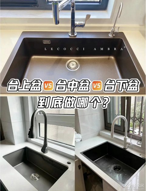 台上盆的优点是安装方便也不容易掉,但致命问题是有个错台,卫生不好清洁,玻璃胶接缝处容易发霉,影响美观。 相比而言,台中盆的优化只是把猫叫了个咪,解决了错台问题,缝隙问题却依旧存在。 台下盆较其它两个而言,才是正解,脏东西能直接扫进水槽里,不过安装相对复杂,好在做橱柜的都包安装。