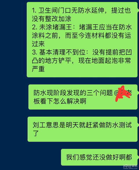 只要去工地必能发现问题,每个环节都在尝试偷工减料及糊弄了事,没有一项能顺利验收,赌的就是你可能发现不了,装修之后听到最多的话就是“这个没事的”、“问题不大的”、“不影响住的”、“一点半点不明显的”,花钱听不同的人给我糊弄一样的话。 前段时间家里刷防水,只是要求他们公布施工的步骤以及防水的品牌,三催四请都不肯回复,被我发现问题后懒得重刷,在群里汇报了一下继续糊弄完事。 感觉现在装修公司的规则就会糊