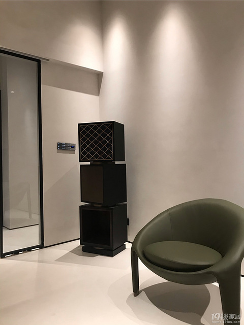 投影幕布,玻璃移门隔断,百叶窗,窗帘打造一个开阔视野和私密空间兼得的书房