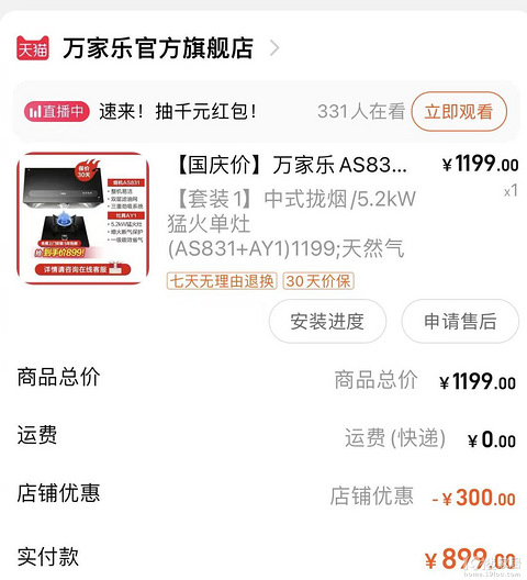 家里有两套房子要用来出租,所以就想着简单装修一下,8万块钱全包给了一个装修队,基本做到拎包入住,但是家电要自己买,所以父母就把买油烟机的重任委托给了我,因为网上采购比较便宜一点。因为装修队伍催着急,所以等不到双11,,就急急忙忙下单了两台传统的中式油烟机套装,因为选规格的没看仔细,本来是选双灶的,结果下单的时候,误选了单灶,悲剧的事情就发生了。 悲剧一:我们发起了退货申请,通过之后,却发现某宝不