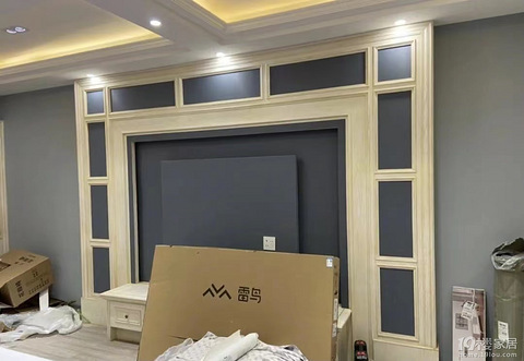我要吐槽,家人们,这电视机背景真的丑爆了。 我家是自建房,年前装修的,因为工作原因,我之前长期在外地,所以家里的装修就交给了我爸妈,但是也提了点装修要求,偏欧式一点。然后我爸妈就找了亲戚来装修,等我回家,就给装成了这样。 另外装修的地方也就忍了,就这电视机背景墙真心忍不了。 框框内原来是镶嵌了棕色的塑料光板,特别丑,我实在受不了,就让贴墙布的贴上了几块深色墙布。但还是不好看,和木框做的白色擦金工艺