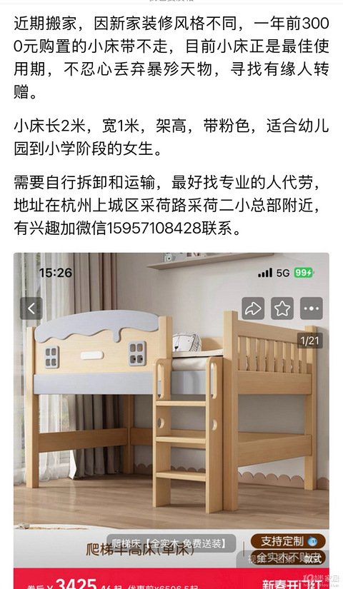 3000元实木儿童床转赠