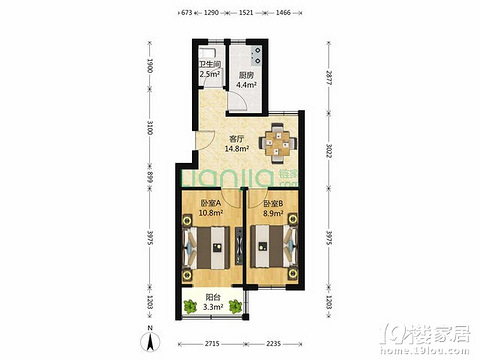 【小区】复地上城 【户型】3室2厅 【面积】110 【风格】原木风 【施工】江水平装饰 平面布置图 原本较大的入户花园,在大门靠窗之间做一个矮柜+高柜的鞋柜,高柜隔断出洗衣区与换鞋凳,而矮柜则是作为玄关与晾衣区的隔断,保持透光的基础又独立的空间功能,实用优雅好自然。在换鞋后方装上挂钩,侧边的墙面也装了一面全身镜,整个空间简洁实用的氛围,令人惬意舒适。 沙发墙是暖灰色墙脚+白色墙身的双色搭配,在上方