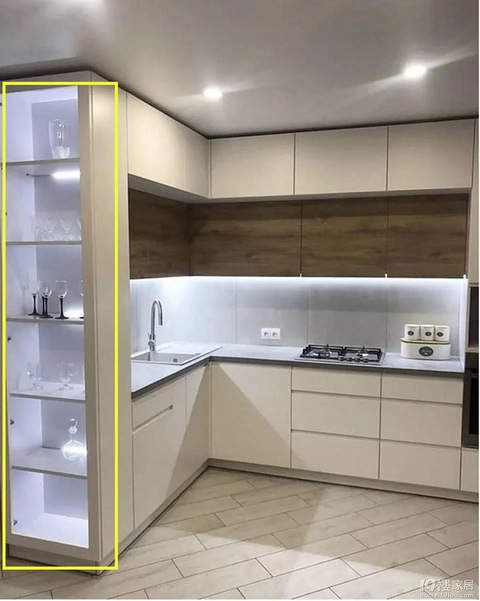 怎么就没想到,把杯柜留在橱柜侧面,分类摆放整齐,瞧着就上档次