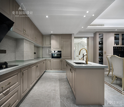 2022年的第一个月,小编帮大家整理了9种风格20款高颜值厨房的设计,这些日常大家都可以参考,快来一起看看吧~ 美式轻奢 简致的橱柜,低饱和度的色彩自带强大亲和力,餐厅与厨房之间设置中岛吧,增加业主料理时可操作的台面,金属五金配件交织其中,兑现低调而雅致的品质生活。 开放式的空间兼融中西两厨房,黑玻作为隔断,围合出一种通而不透的空间感。 空间划分为料理、休闲吧台、用餐三个功能区。以浅色为主,深色作