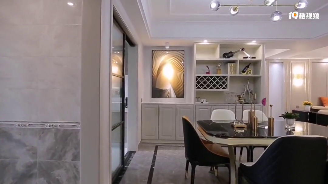 本案例用高级灰配色融合大理石材质,在现代简约的同时打造出轻奢风格。整体设计中为了统一色调,运用了黑、白、灰三色大理石,打造出了现代都市生活下简练与优雅的生活氛围。