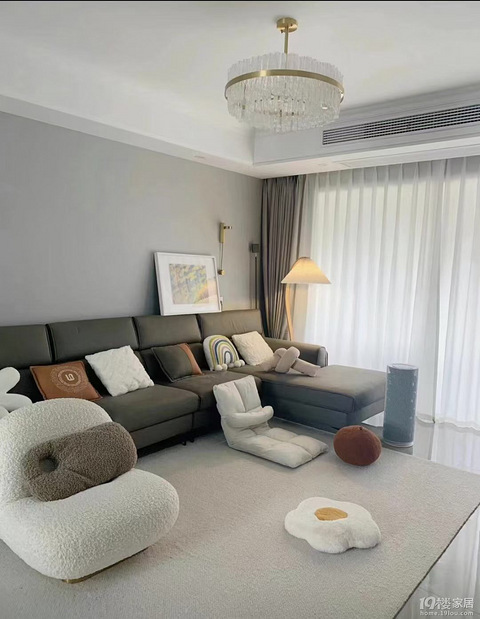 在美少女小时候,家里有一个大客厅,是一件幸福感爆棚的事情,躺在沙发上看看电视,和爸妈进行友好的亲子交流,全都离不开一个大大的客厅。 但是现在,客厅的存在感越来越低,看电视有ipad、做作业有书房,就算回家玩手机,多半也会选择在床上躺着玩。 (19楼APP装修网友@lillian的客厅) 想要拯救客厅空间,看似很简单,做起来可一点都不简单。 比起卧室、餐厨等等实用空间,客厅的功能区只有3个:电视投影