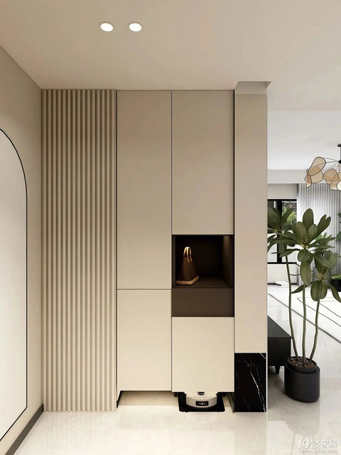 玄关,又称门厅,是指建筑物入门处到正厅之间的一段转折空间,是室内外的缓冲地带。入户玄关,是日常出入最重要的地方,也是家的第一“门面”。那么如何打造实用又颜值在线的玄关柜,给客人留下美好的第一印象呢?小编这就给大家提供些些灵感~ 一、一柜到顶设计干净利落的一柜到顶设计,充分利用纵向墙面打造储物空间,让整个玄关柜更显大气,玄关空间气场更强。 再加入隔板设计,既可以增加视觉效果,又做到了展示、收纳两不误