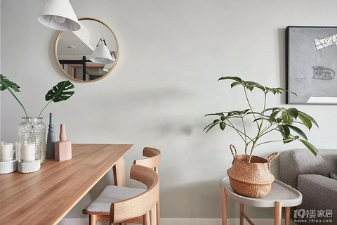纯白系的房子,给人一种平静又高贵的既视感。从侧面又显示出房子主人对纯洁的执着。在房间内放置绿植,带来白色所没有的生气。下面我们一起来看看设计师的巧夺天工吧。从整体布局可以看出,空间的性质追求着,随性自由,对称的格局,使空间更加宽敞明朗。餐桌上的吊灯更加添加了进餐时的情调。墙壁上的挂饰给整个空间增加了艺术气息。 看到这里,大家有没有发现,在整个装修风格中除了主体的纯白色墙面,沙发选用了最火的高级灰的