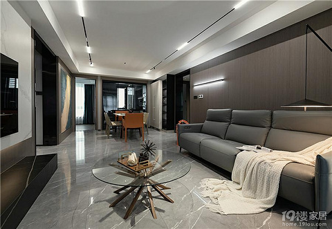 黑色总是带给人无限的遐想和神秘感,就像欧洲古堡的那抹冷静和在历史风尘中的处变不惊。而将这份亘古的质感融入现代化的家居,又会展现出什么样的风采呢?案例信息案例地址:杭州江南学府案例面积:139㎡案例风格:工业风客厅 客厅设计了整面的落地窗,用自然光来调和工业风常用的黑色和棕色,使室内的光线达到平衡。黑色的沙发极具冷峻感,搭配深棕色的天花板和木饰面,将工业风的精髓展现得淋漓尽致。 设计师在本案中运用了